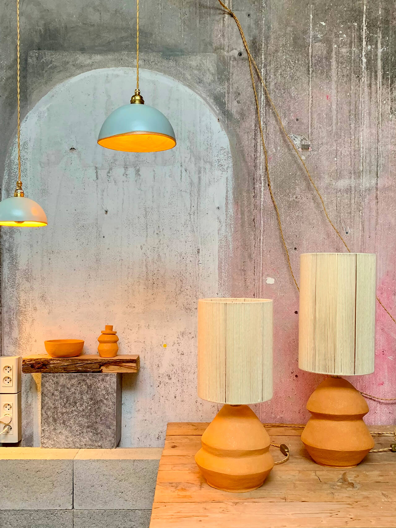 Surface, un atelier de création de céramiques et tissages basé en Bretagne, Finistère. Une collection de pièces uniques façonnées à la main : luminaires, tissages conçus en petite série.