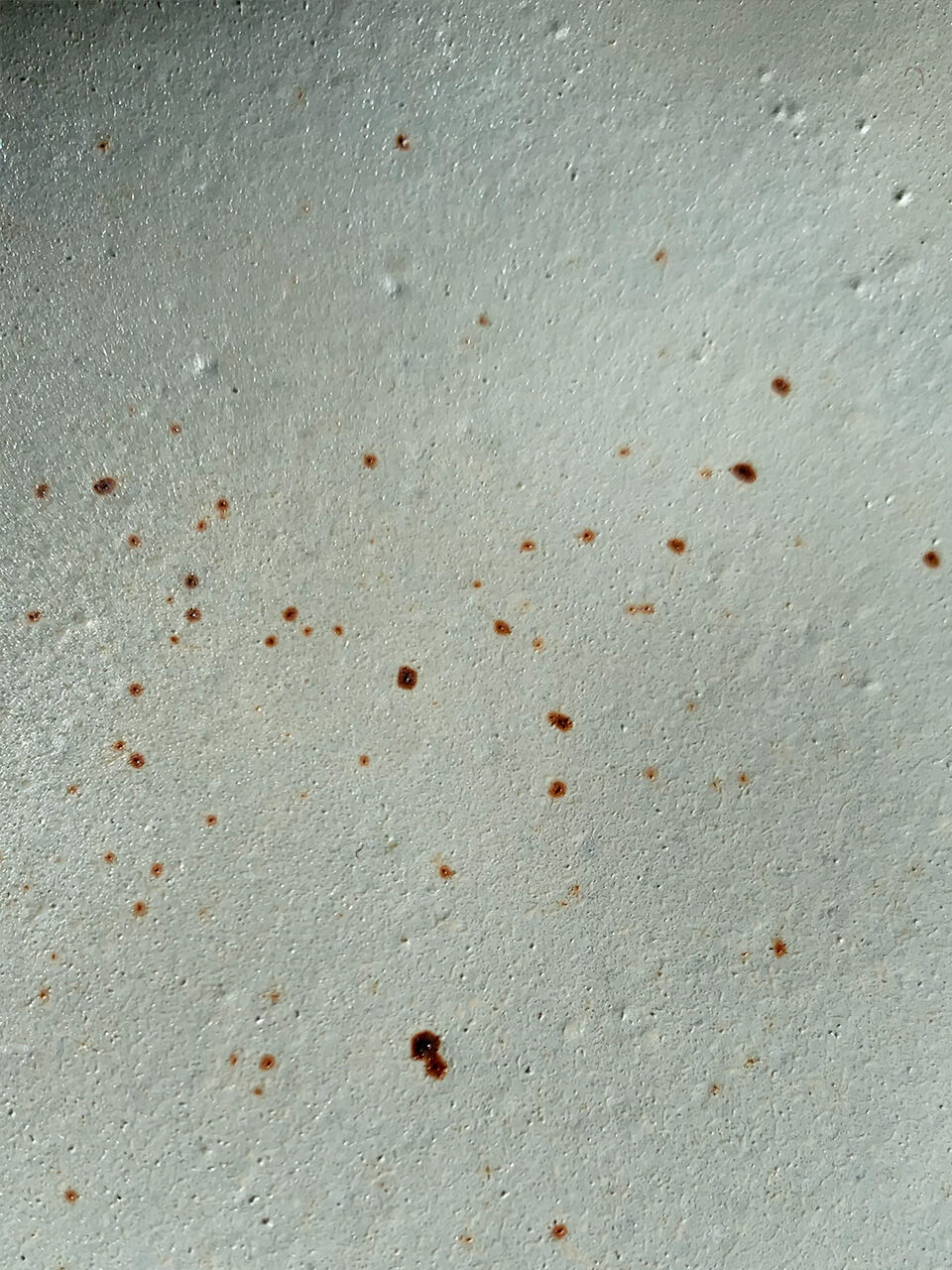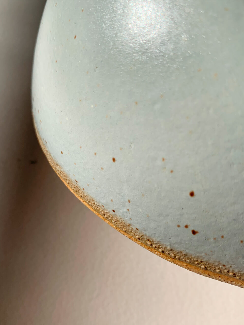 Elle est émaillée avec une glaçure gris-bleu à l’aspect velouté.